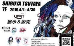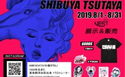 2019年10月1日〜10月31までの期間、SHIBUYA TSUTAYAさん6Fのレジ前スペースにて、染色アーティスト023さんと合同でPOP-UPを開催して頂きました。 POP-UPのメインビジュアルポスターは描き下ろしの作品で、02...